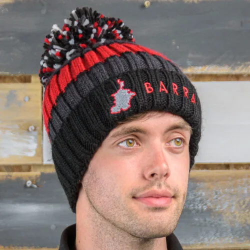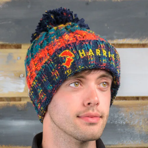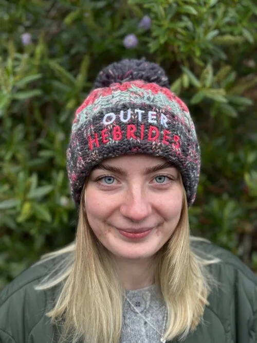 Fleece lined knitted bobble hat with ‘Outer Hebrides’ branding